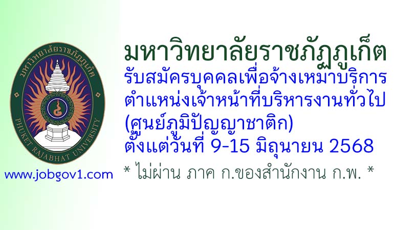 มหาวิทยาลัยราชภัฏภูเก็ต รับสมัครบุคคลเพื่อจ้างเหมาบริการ ตำแหน่งเจ้าหน้าที่บริหารงานทั่วไป (ศูนย์ภูมิปัญญาชาติก) ตั้งแต่วันที่ 9-15 มิถุนายน 2568