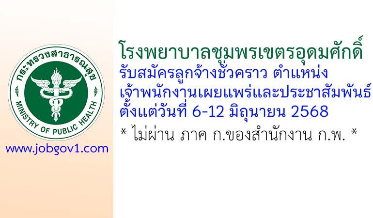 โรงพยาบาลชุมพรเขตรอุดมศักดิ์ รับสมัครลูกจ้างชั่วคราว ตำแหน่งเจ้าพนักงานเผยแพร่และประชาสัมพันธ์ ตั้งแต่วันที่ 6-12 มิถุนายน 2568