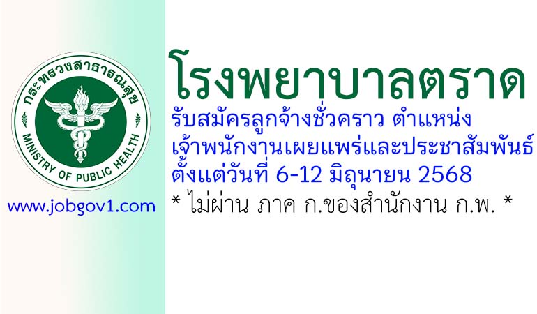 โรงพยาบาลตราด รับสมัครลูกจ้างชั่วคราว ตำแหน่งนักวิชาการสาธารณสุข ตั้งแต่บัดนี้ถึง 13 มิถุนายน 2568