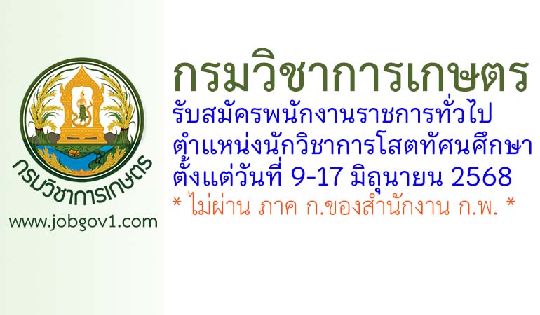กรมวิชาการเกษตร รับสมัครพนักงานราชการทั่วไป ตำแหน่งนักวิชาการโสตทัศนศึกษา ตั้งแต่วันที่ 9-17 มิถุนายน 2568