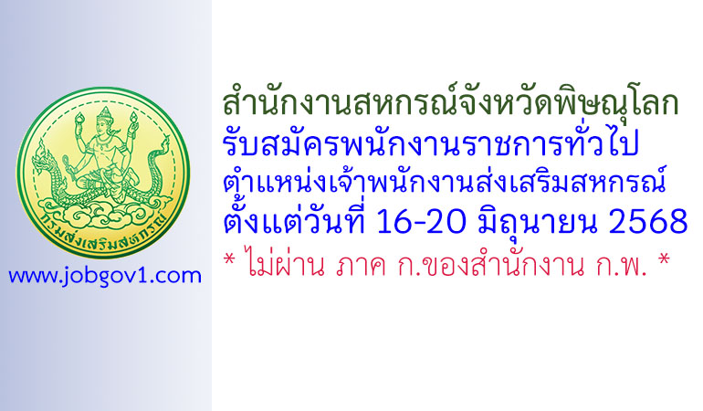 สำนักงานสหกรณ์จังหวัดพิษณุโลก รับสมัครพนักงานราชการทั่วไป ตำแหน่งเจ้าพนักงานส่งเสริมสหกรณ์ ตั้งแต่วันที่ 16-20 มิถุนายน 2568