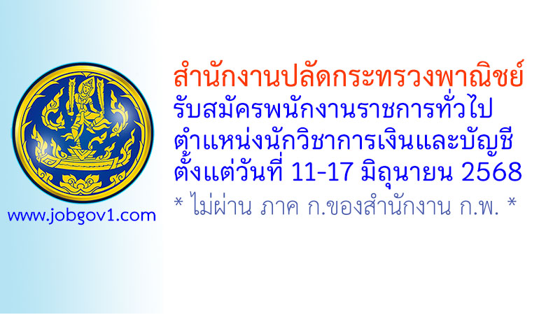 สำนักงานปลัดกระทรวงพาณิชย์ รับสมัครพนักงานราชการทั่วไป ตำแหน่งนักวิชาการเงินและบัญชี ตั้งแต่วันที่ 11-17 มิถุนายน 2568