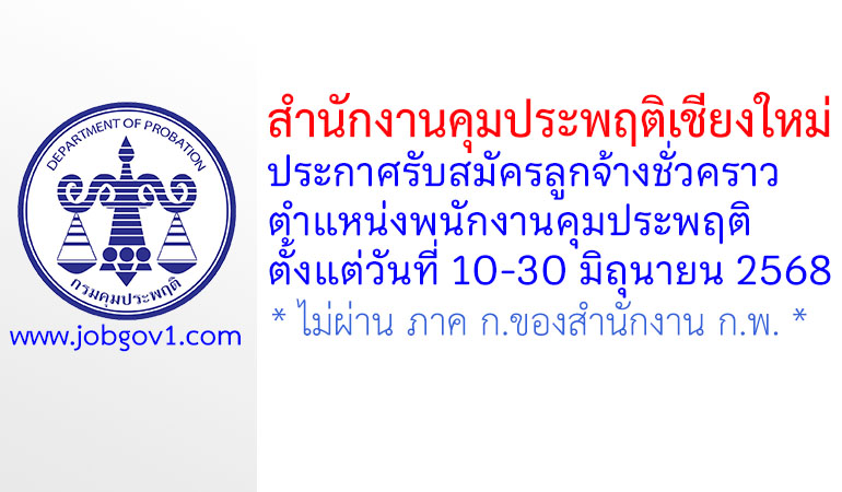 สำนักงานคุมประพฤติเชียงใหม่ รับสมัครลูกจ้างชั่วคราว ตำแหน่งพนักงานคุมประพฤติ ตั้งแต่วันที่ 10-30 มิถุนายน 2568