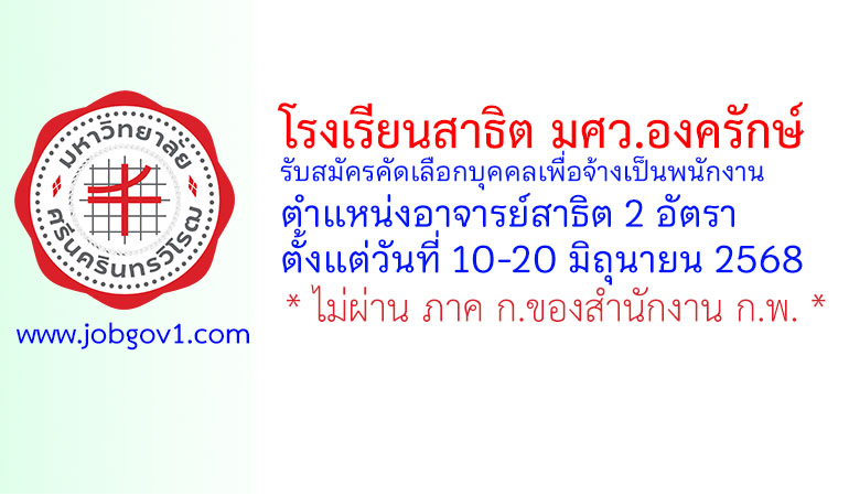โรงเรียนสาธิต มศว.องครักษ์ รับสมัครคัดเลือกบุคคลเพื่อจ้างเป็นพนักงาน ตำแหน่งอาจารย์สาธิต 2 อัตรา ตั้งแต่วันที่ 10-20 มิถุนายน 2568
