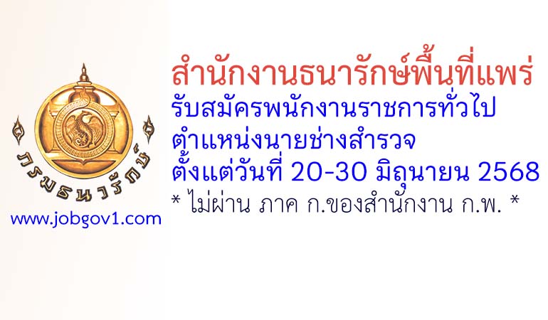 ประกาศจังหวัดแพร่ เรื่อง รับสมัครบุคคลเพื่อสรรหาและเลือกสรรเป็นพนักงานราชการทั่วไป ตำแหน่งนายช่างสำรวจ สำนักงานธนารักษ์พื้นที่แพร่