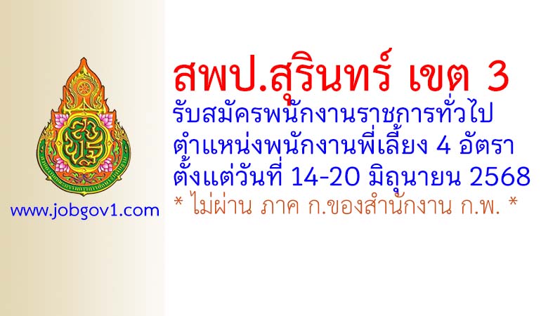 สพป.สุรินทร์ เขต 3 รับสมัครพนักงานราชการทั่วไป ตำแหน่งพนักงานพี่เลี้ยง 4 อัตรา ตั้งแต่วันที่ 14-20 มิถุนายน 2568