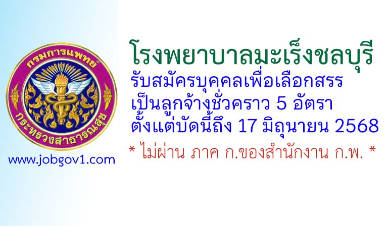 โรงพยาบาลมะเร็งชลบุรี รับสมัครบุคคลเพื่อเลือกสรรเป็นลูกจ้างชั่วคราว 5 อัตรา ตั้งแต่บัดนี้ถึง 17 มิถุนายน 2568