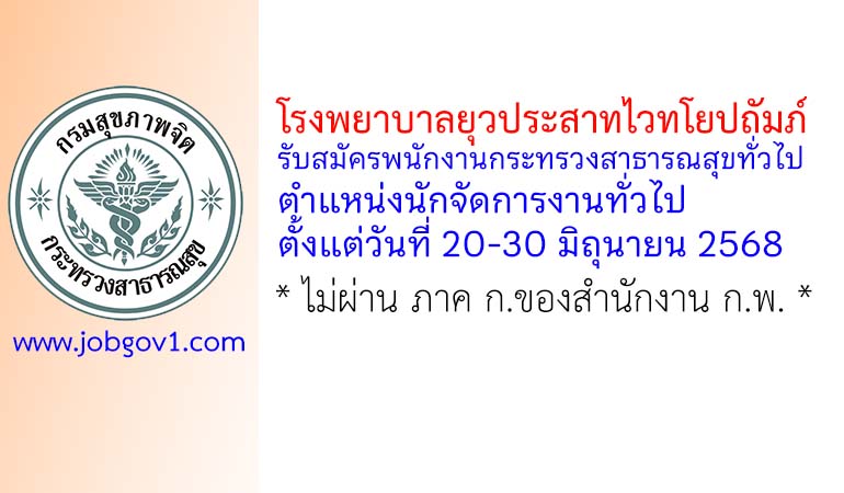 โรงพยาบาลยุวประสาทไวทโยปถัมภ์ รับสมัครพนักงานกระทรวงสาธารณสุขทั่วไป ตำแหน่งนักจัดการงานทั่วไป ตั้งแต่วันที่ 20-30 มิถุนายน 2568