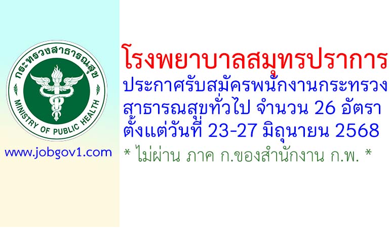 โรงพยาบาลสมุทรปราการ รับสมัครพนักงานกระทรวงสาธารณสุขทั่วไป 26 อัตรา ตั้งแต่วันที่ 23-27 มิถุนายน 2568
