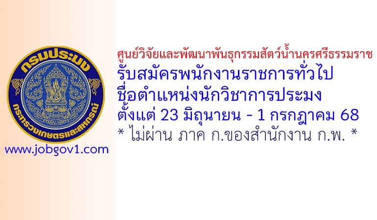 ศูนย์วิจัยและพัฒนาพันธุกรรมสัตว์น้ำนครศรีธรรมราช รับสมัครพนักงานราชการทั่วไป ตำแหน่งนักวิชาการประมง ตั้งแต่วันที่ 23 มิถุนายน – 1 กรกฎาคม 2568