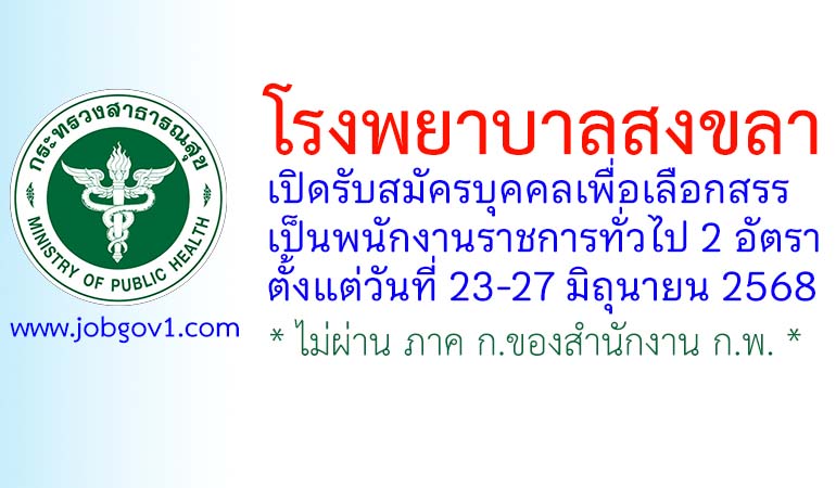 โรงพยาบาลสงขลา รับสมัครบุคคลเพื่อเลือกสรรเป็นพนักงานราชการทั่วไป 2 อัตรา ตั้งแต่วันที่ 23-27 มิถุนายน 2568