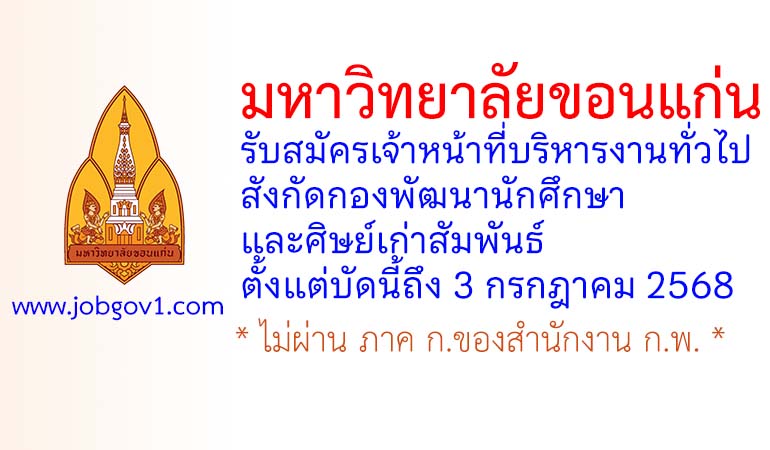 มหาวิทยาลัยขอนแก่น รับสมัครเจ้าหน้าที่บริหารงานทั่วไป สังกัดกองพัฒนานักศึกษาและศิษย์เก่าสัมพันธ์ ตั้งแต่บัดนี้ถึง 3 กรกฎาคม 2568