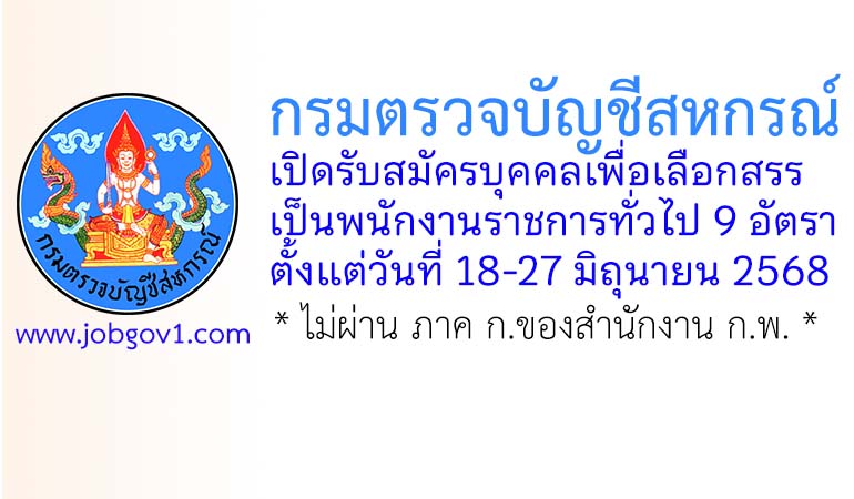 กรมตรวจบัญชีสหกรณ์ รับสมัครบุคคลเพื่อเลือกสรรเป็นพนักงานราชการทั่วไป 9 อัตรา ตั้งแต่วันที่ 18-27 มิถุนายน 2568