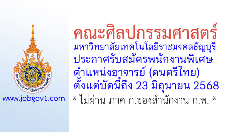 คณะศิลปกรรมศาสตร์ มหาวิทยาลัยเทคโนโลยีราชมงคลธัญบุรี รับสมัครพนักงานพิเศษ ตำแหน่งอาจารย์ (ดนตรีไทย) ตั้งแต่บัดนี้ถึง 23 มิถุนายน 2568