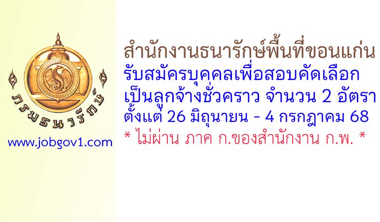 สำนักงานธนารักษ์พื้นที่ขอนแก่น รับสมัครลูกจ้างชั่วคราว 2 อัตรา ตั้งแต่ 26 มิถุนายน – 4 กรกฎาคม 2568