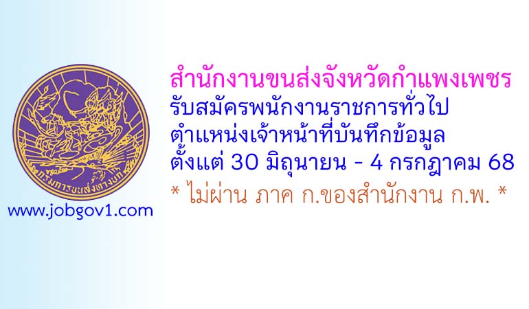 สำนักงานขนส่งจังหวัดกำแพงเพชร รับสมัครพนักงานราชการทั่วไป ตำแหน่งเจ้าหน้าที่บันทึกข้อมูล ตั้งแต่ 30 มิถุนายน – 4 กรกฎาคม 2568