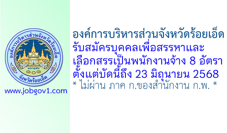 องค์การบริหารส่วนจังหวัดร้อยเอ็ด รับสมัครบุคคลเพื่อสรรหาและเลือกสรรเป็นพนักงานจ้าง 8 อัตรา ตั้งแต่บัดนี้ถึง 23 มิถุนายน 2568