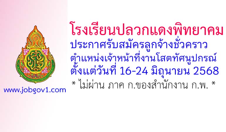 โรงเรียนปลวกแดงพิทยาคม รับสมัครลูกจ้างชั่วคราว ตำแหน่งเจ้าหน้าที่งานโสตทัศนูปกรณ์ ตั้งแต่วันที่ 16-24 มิถุนายน 2568