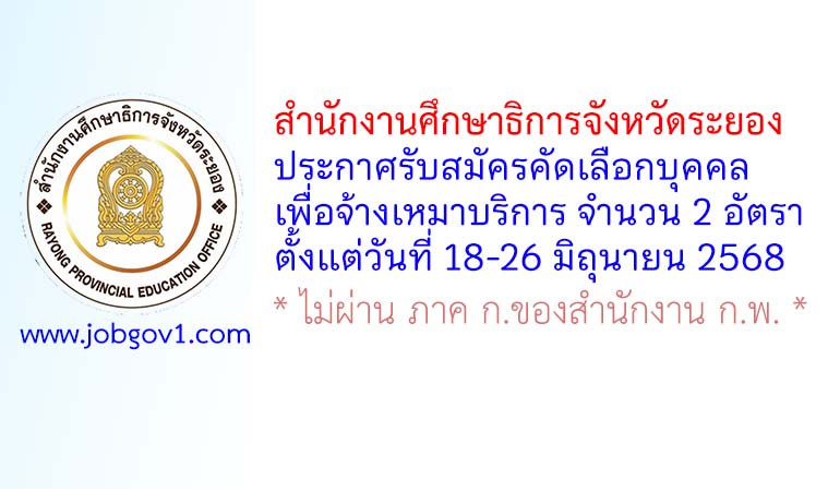 สำนักงานศึกษาธิการจังหวัดระยอง รับสมัครคัดเลือกบุคคลเพื่อจ้างเหมาบริการ 2 อัตรา ตั้งแต่วันที่ 18-26 มิถุนายน 2568