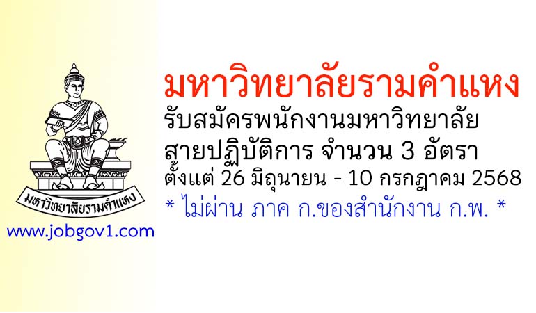 มหาวิทยาลัยรามคำแหง รับสมัครพนักงานมหาวิทยาลัย สายปฏิบัติการ 3 อัตรา ตั้งแต่ 26 มิถุนายน – 10 กรกฎาคม 2568