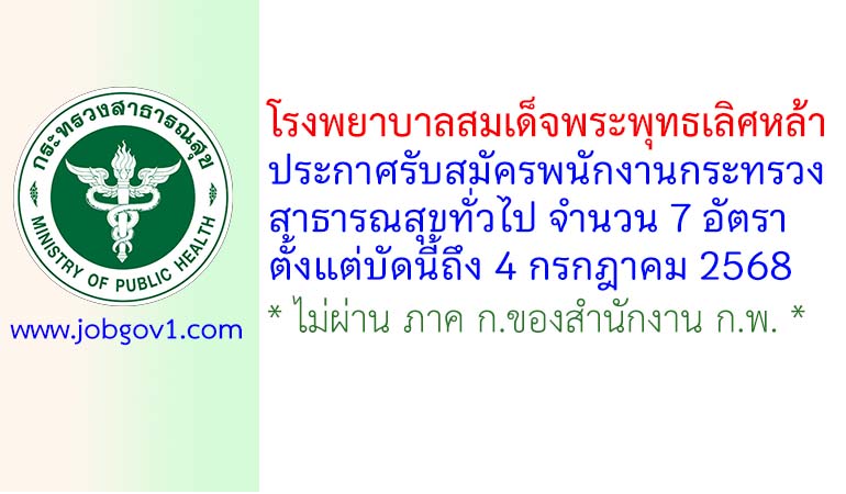 โรงพยาบาลสมเด็จพระพุทธเลิศหล้า รับสมัครพนักงานกระทรวงสาธารณสุขทั่วไป 7 อัตรา ตั้งแต่บัดนี้ถึง 4 กรกฎาคม 2568