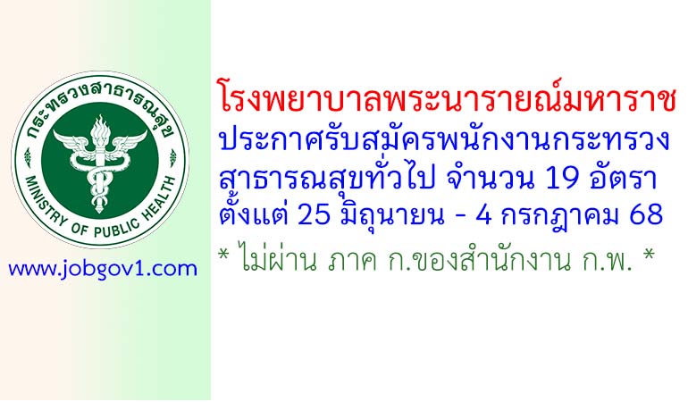 โรงพยาบาลพระนารายณ์มหาราช รับสมัครพนักงานกระทรวงสาธารณสุขทั่วไป 19 อัตรา ตั้งแต่ 25 มิถุนายน – 4 กรกฎาคม 2568