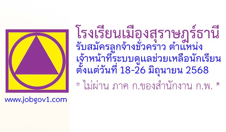 โรงเรียนเมืองสุราษฎร์ธานี รับสมัครลูกจ้างชั่วคราว ตำแหน่งเจ้าหน้าที่ระบบดูแลช่วยเหลือนักเรียน ตั้งแต่วันที่ 18-26 มิถุนายน 2568