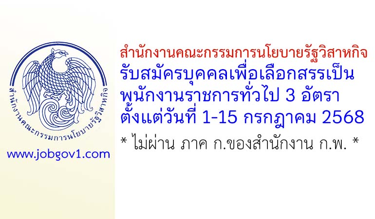 สำนักงานคณะกรรมการนโยบายรัฐวิสาหกิจ รับสมัครบุคคลเพื่อเลือกสรรเป็นพนักงานราชการทั่วไป 3 อัตรา ตั้งแต่วันที่ 1-15 กรกฎาคม 2568