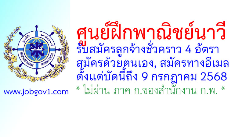 ศูนย์ฝึกพาณิชย์นาวี รับสมัครลูกจ้างชั่วคราว 4 อัตรา ตั้งแต่บัดนี้ถึง 9 กรกฎาคม 2568