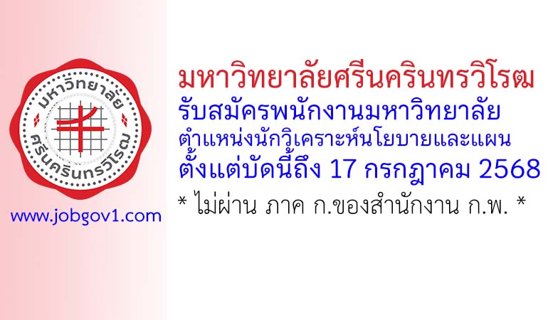 มหาวิทยาลัยศรีนครินทรวิโรฒ รับสมัครพนักงานมหาวิทยาลัย ตำแหน่งนักวิเคราะห์นโยบายและแผน ตั้งแต่บัดนี้ถึง 17 กรกฎาคม 2568