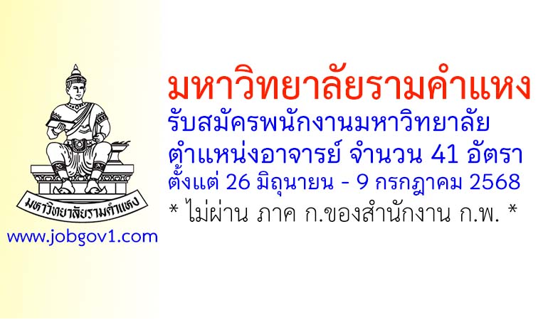 มหาวิทยาลัยรามคำแหง รับสมัครพนักงานมหาวิทยาลัย ตำแหน่งอาจารย์ 41 อัตรา ตั้งแต่ 26 มิถุนายน – 9 กรกฎาคม 2568