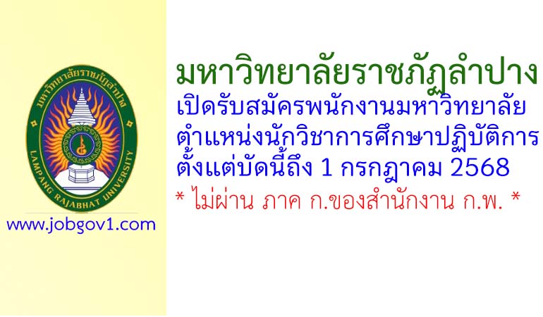 มหาวิทยาลัยราชภัฏลำปาง รับสมัครพนักงานมหาวิทยาลัย ตำแหน่งนักวิชาการศึกษาปฏิบัติการ ตั้งแต่บัดนี้ถึง 1 กรกฎาคม 2568