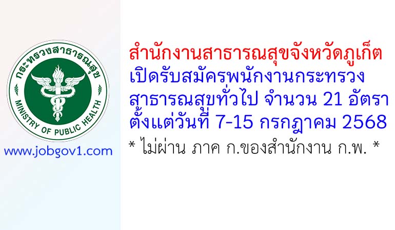 สำนักงานสาธารณสุขจังหวัดภูเก็ต รับสมัครบุคคลเพื่อเลือกสรรเป็นพนักงานราชการทั่วไป 3 อัตรา ตั้งแต่ 30 มิถุนายน – 4 กรกฎาคม 2568