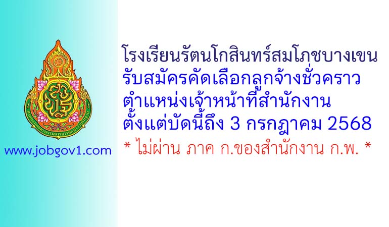 โรงเรียนรัตนโกสินทร์สมโภชบางเขน รับสมัครคัดเลือกลูกจ้างชั่วคราว ตำแหน่งเจ้าหน้าที่สำนักงาน ตั้งแต่บัดนี้ถึง 3 กรกฎาคม 2568