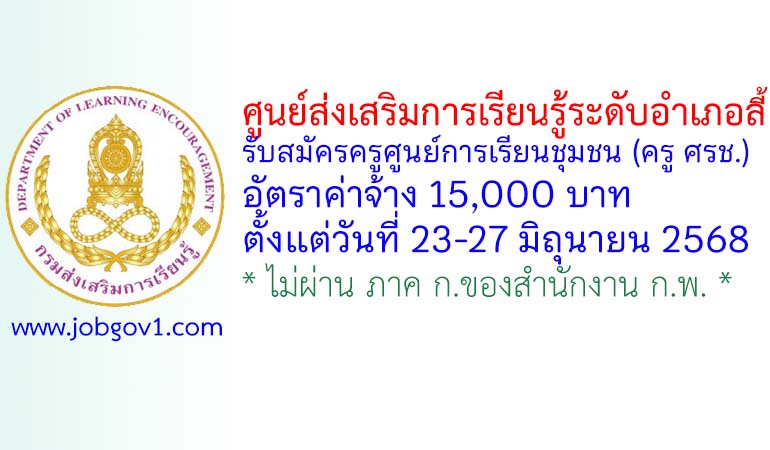 ศูนย์ส่งเสริมการเรียนรู้ระดับอำเภอลี้ รับสมัครครูศูนย์การเรียนชุมชน (ครู ศรช.) ตั้งแต่วันที่ 23-27 มิถุนายน 2568