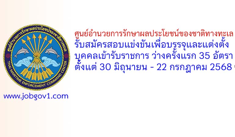 ศูนย์อำนวยการรักษาผลประโยชน์ของชาติทางทะเล รับสมัครสอบแข่งขันเพื่อบรรจุและแต่งตั้งบุคคลเข้ารับราชการ ว่างครั้งแรก 35 อัตรา ตั้งแต่ 30 มิถุนายน – 22 กรกฎาคม 2568