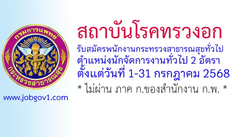 สถาบันโรคทรวงอก รับสมัครพนักงานกระทรวงสาธารณสุขทั่วไป ตำแหน่งนักจัดการงานทั่วไป 2 อัตรา ตั้งแต่วันที่ 1-31 กรกฎาคม 2568