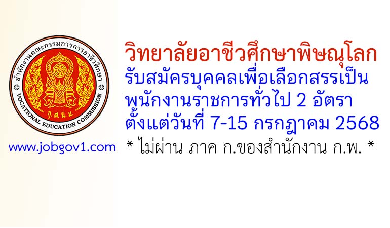 วิทยาลัยอาชีวศึกษาพิษณุโลก รับสมัครบุคคลเพื่อเลือกสรรเป็นพนักงานราชการทั่วไป 2 อัตรา ตั้งแต่วันที่ 7-15 กรกฎาคม 2568