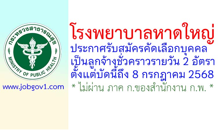 โรงพยาบาลหาดใหญ่ รับสมัครลูกจ้างชั่วคราว 2 อัตรา ตั้งแต่บัดนี้ถึง 8 กรกฎาคม 2568