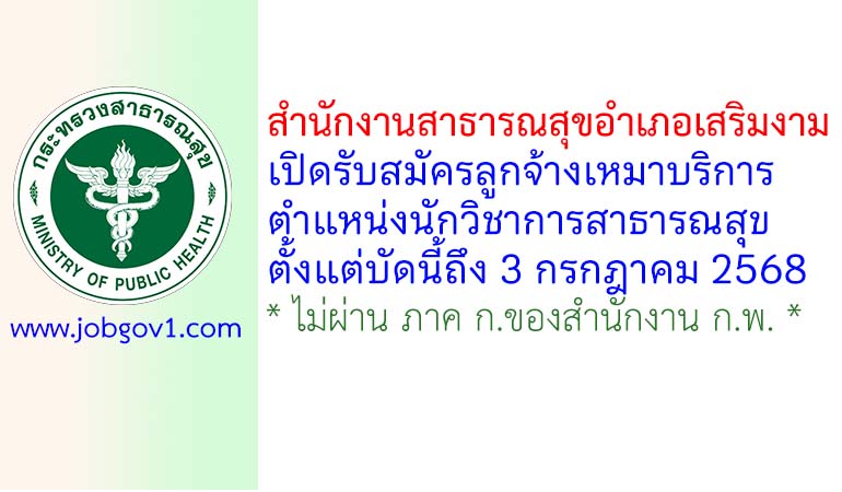 สำนักงานสาธารณสุขอำเภอเสริมงาม รับสมัครลูกจ้างเหมาบริการ ตำแหน่งนักวิชาการสาธารณสุข ตั้งแต่บัดนี้ถึง 3 กรกฎาคม 2568