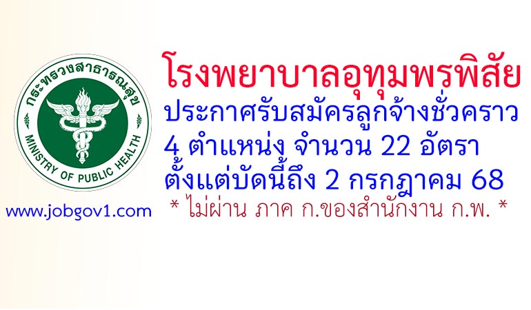 โรงพยาบาลอุทุมพรพิสัย รับสมัครลูกจ้างชั่วคราว 4 ตำแหน่ง 22 อัตรา ตั้งแต่บัดนี้ถึง 2 กรกฎาคม 2568