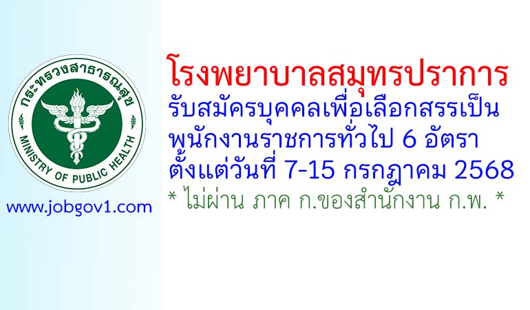 โรงพยาบาลสมุทรปราการ รับสมัครบุคคลเพื่อเลือกสรรเป็นพนักงานราชการทั่วไป 6 อัตรา ตั้งแต่วันที่ 7-15 กรกฎาคม 2568