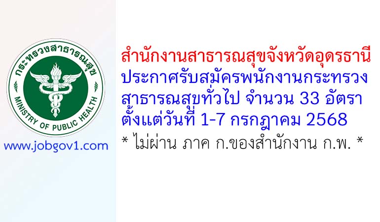 สำนักงานสาธารณสุขจังหวัดอุดรธานี รับสมัครพนักงานกระทรวงสาธารณสุขทั่วไป 33 อัตรา ตั้งแต่วันที่ 1-7 กรกฎาคม 2568
