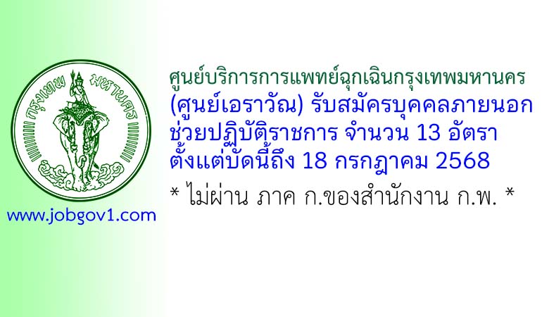 ศูนย์บริการการแพทย์ฉุกเฉินกรุงเทพมหานคร (ศูนย์เอราวัณ) รับสมัครบุคคลภายนอกช่วยปฏิบัติราชการ 13 อัตรา ตั้งแต่บัดนี้ถึง 18 กรกฎาคม 2568