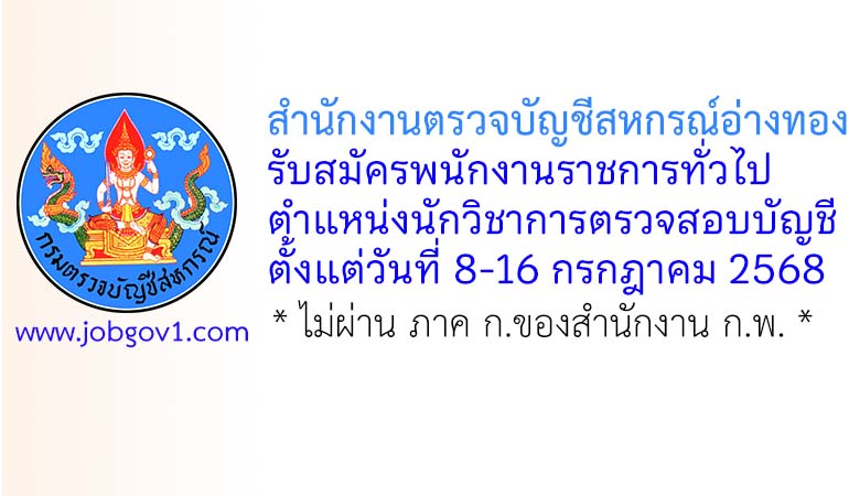 สำนักงานตรวจบัญชีสหกรณ์อ่างทอง รับสมัครพนักงานราชการทั่วไป ตำแหน่งนักวิชาการตรวจสอบบัญชี ตั้งแต่วันที่ 8-16 กรกฎาคม 2568