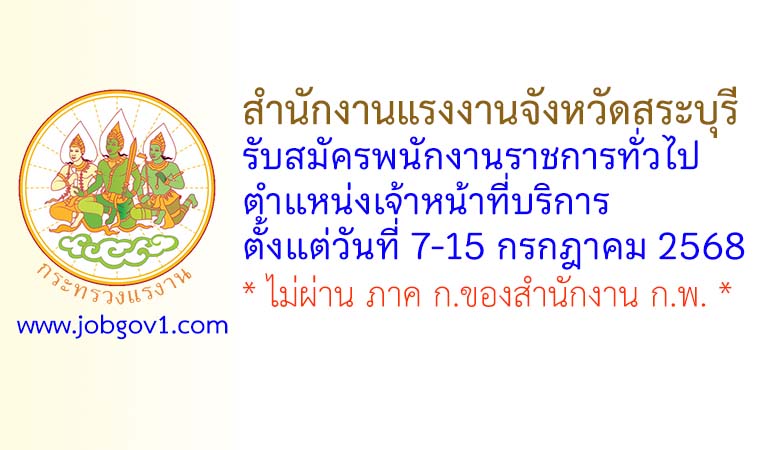 สำนักงานแรงงานจังหวัดสระบุรี รับสมัครพนักงานราชการทั่วไป ตำแหน่งเจ้าหน้าที่บริการ ตั้งแต่วันที่ 7-15 กรกฎาคม 2568