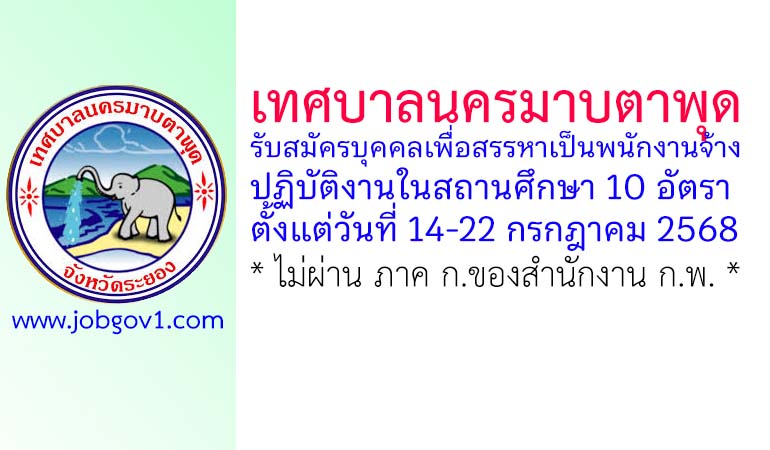 เทศบาลนครมาบตาพุด รับสมัครบุคคลเพื่อสรรหาเป็นพนักงานจ้างปฏิบัติงานในสถานศึกษา 10 อัตรา ตั้งแต่วันที่ 14-22 กรกฎาคม 2568