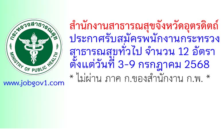 สำนักงานสาธารณสุขจังหวัดอุตรดิตถ์ รับสมัครพนักงานกระทรวงสาธารณสุขทั่วไป 12 อัตรา ตั้งแต่วันที่ 3-9 กรกฎาคม 2568