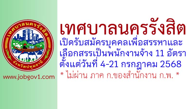 เทศบาลนครรังสิต รับสมัครบุคคลเพื่อสรรหาและเลือกสรรเป็นพนักงานจ้าง 11 อัตรา ตั้งแต่วันที่ 4-21 กรกฎาคม 2568
