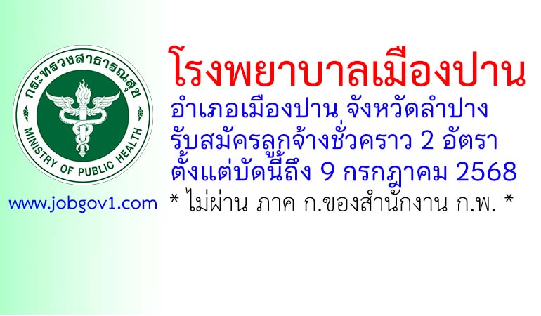 โรงพยาบาลเมืองปาน รับสมัครลูกจ้างชั่วคราว 2 อัตรา ตั้งแต่บัดนี้ถึง 9 กรกฎาคม 2568